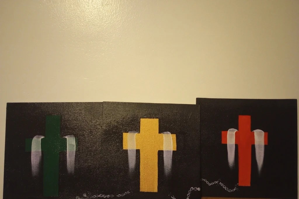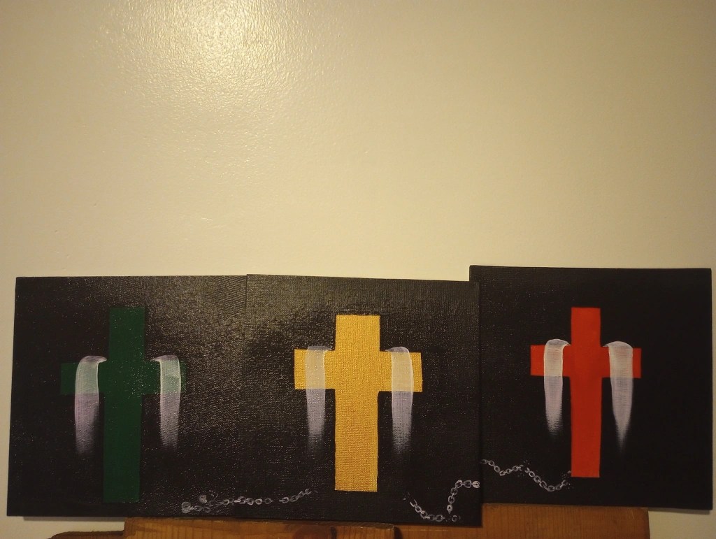“Break Every Chain” in Green, Gold, and Red from the Juneteenth Collection, Acrylic on 8 x 8 canvas with gloss finish (2023)