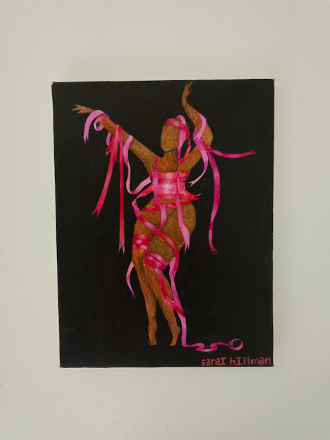 “Grace and the Pink Ribbon” from the Painted Ladies Series, Acriylic on 6 x 8 canvas (2021)