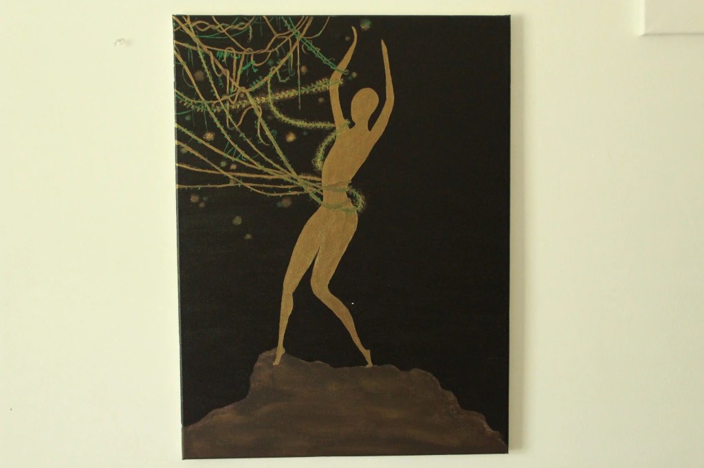 “The Lady and the Entangled Enchantment” from the Painted Lady series, Acrylic on 18 x 24 canvas (2023)