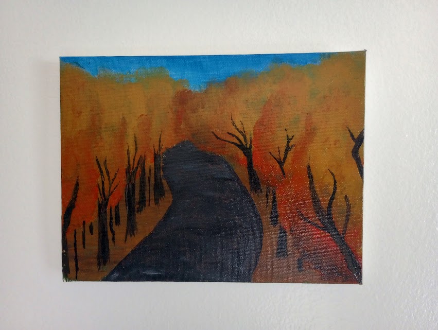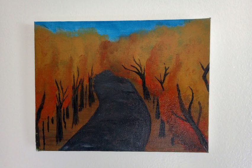 “The Path to Fall”, Acrylic on 6 x 8 canvas with gloss finish (2023)